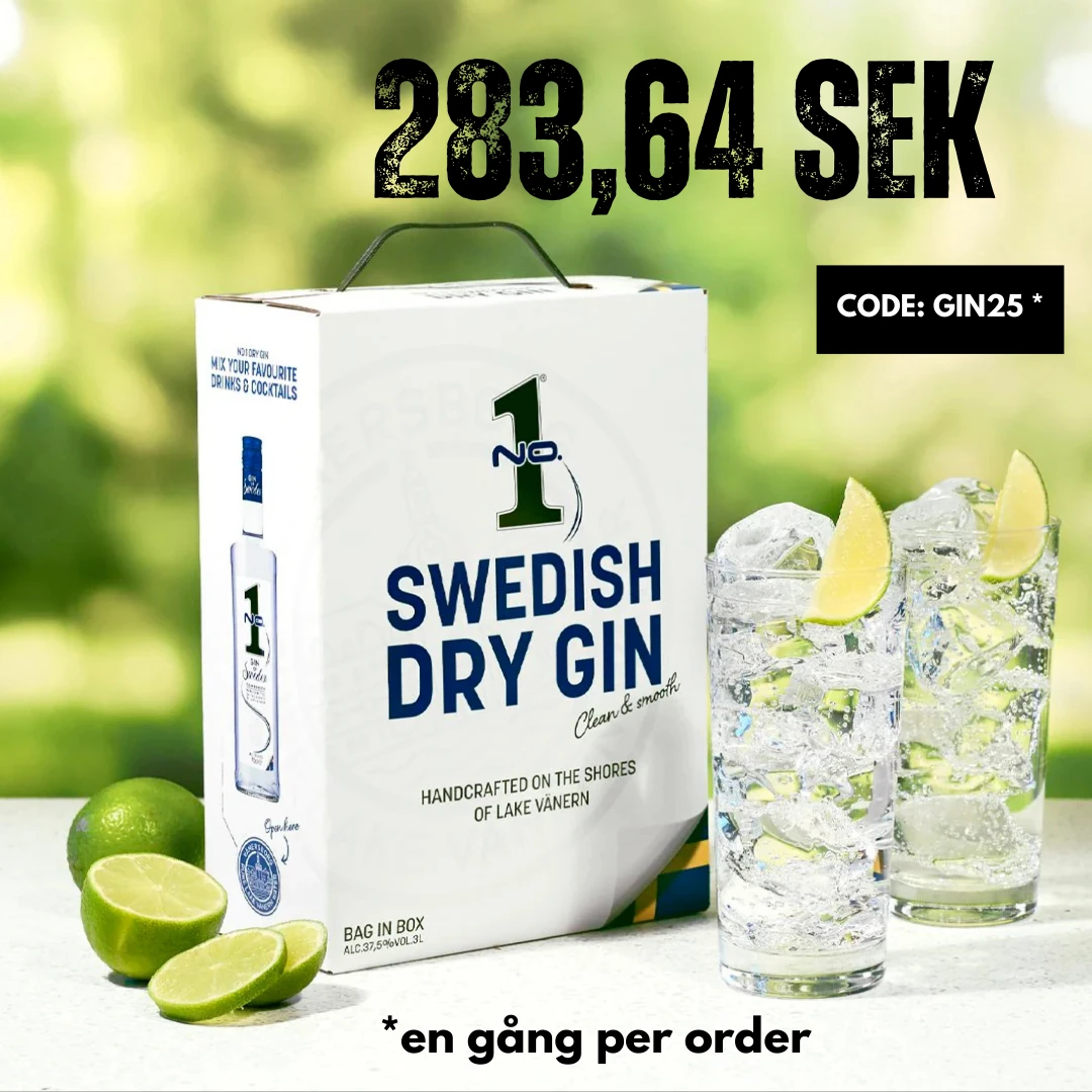 No.1 Gin BIB 3L och No.1 Vodka BIB 3L till toppris på 283:- styck! Ange koderna GIN25 & VODKA25 i kassan.
